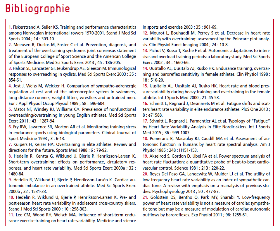 Un programme de récupération peut être adapté suite à l’analyse de VFC à la condition physiologique ou au type de fatigue en faisant appel à des méthodes purement physiques (entraînement adapté, kinésithérapie, hydrothérapie, réflexologie…). Ce programme destiné à rétablir l’équilibre neurovégétatif temporairement altéré peut permettre un retour plus rapide aux conditions de forme. Une telle démarche constitue alors une contre-mesure de la fatigue et du surentraînement en proposant une modulation individualisée de l’entraînement et de la récupération, en opposition totale avec les concepts de “préparation biologique” ou de “correction pharmacologique des déficits endocriniens et métaboliques” qui constituent en fait un risque d’entrée dans une démarche dopante.