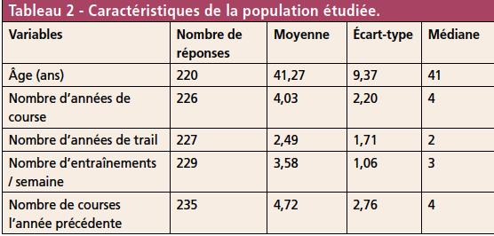 L’analyse de certains éléments concernant l’état physique des concurrentes de trail n’a pas montré de résultats statistiquement significatifs comme :