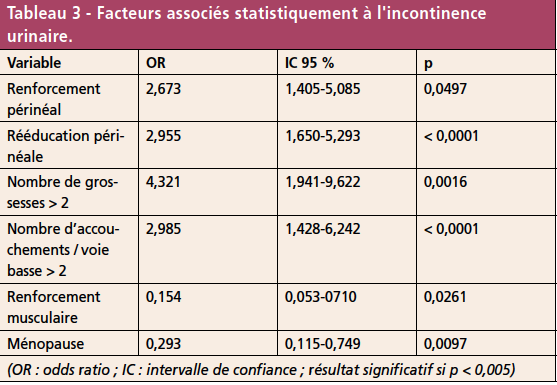 D’autres facteurs ont été étudiés concernant les antécédents médicaux des traileuses, le caractère significatif étant retenu pour p < 0,005 (Tab. 3).